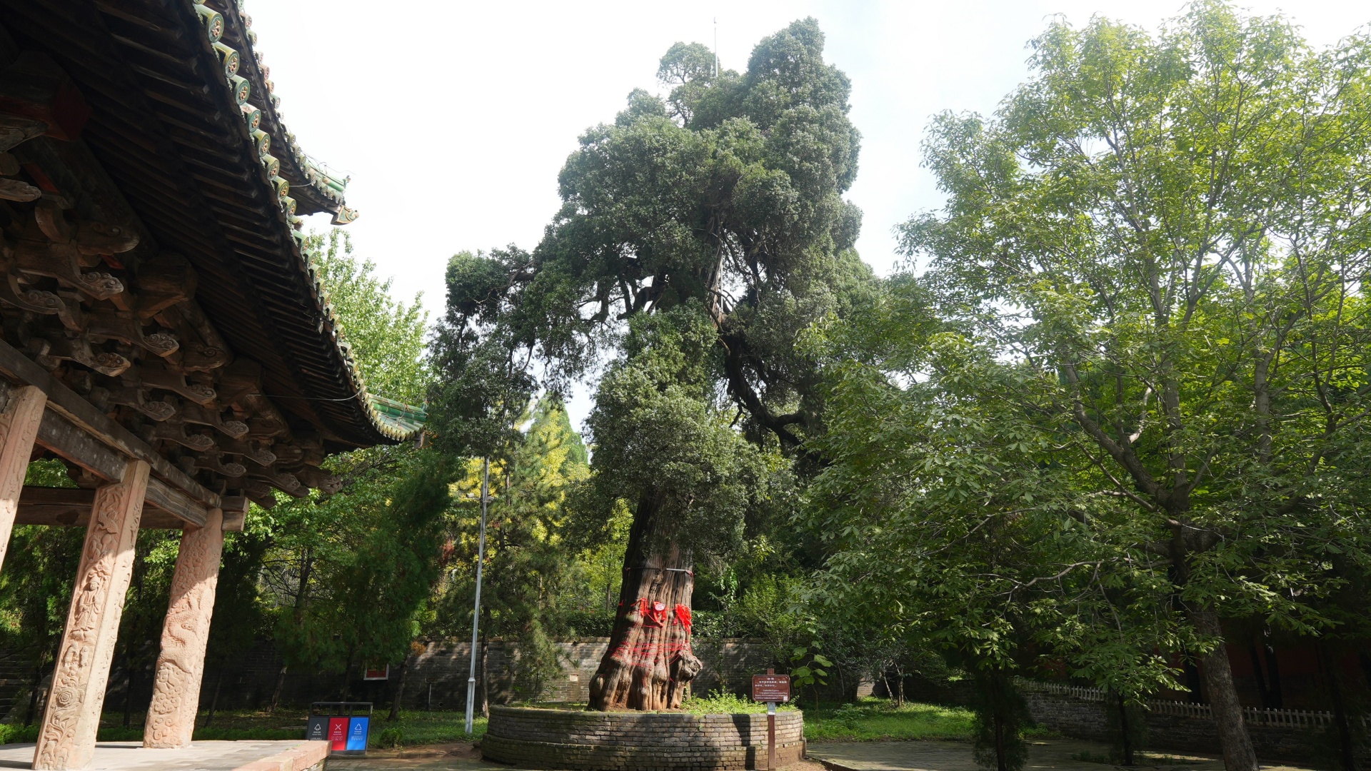 伞柏因树冠形如撑开的巨伞而得名,种植于唐代,是阳台宫千年历史的见证。