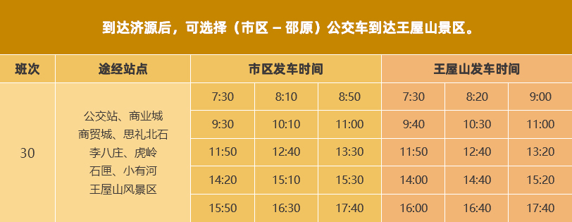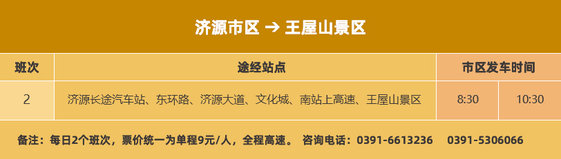 走济晋高速到济源东下高速,直走济水大道至天坛路右转,至济邵公路(S312)左转,直走40公里(或转济邵高速王屋山站下高速,右转直走3公里)即到。
