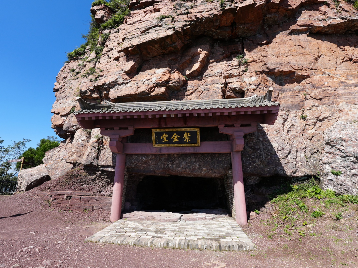 王屋山の主峰は四方に立っていて、景観が独特で、岩が赤紫色を呈し、太陽の光に照らされて輝いていて、色とりどりである。「紫金」は伝統文化の中で瑞祥、尊貴を意味し、そのため「紫金崖」と呼ばれている。下には紫金堂があり、「昔は軒轅黄帝がここに休んでいた」という。その後、入浴し、着替えし、頂上に登って、天を祭ったという。