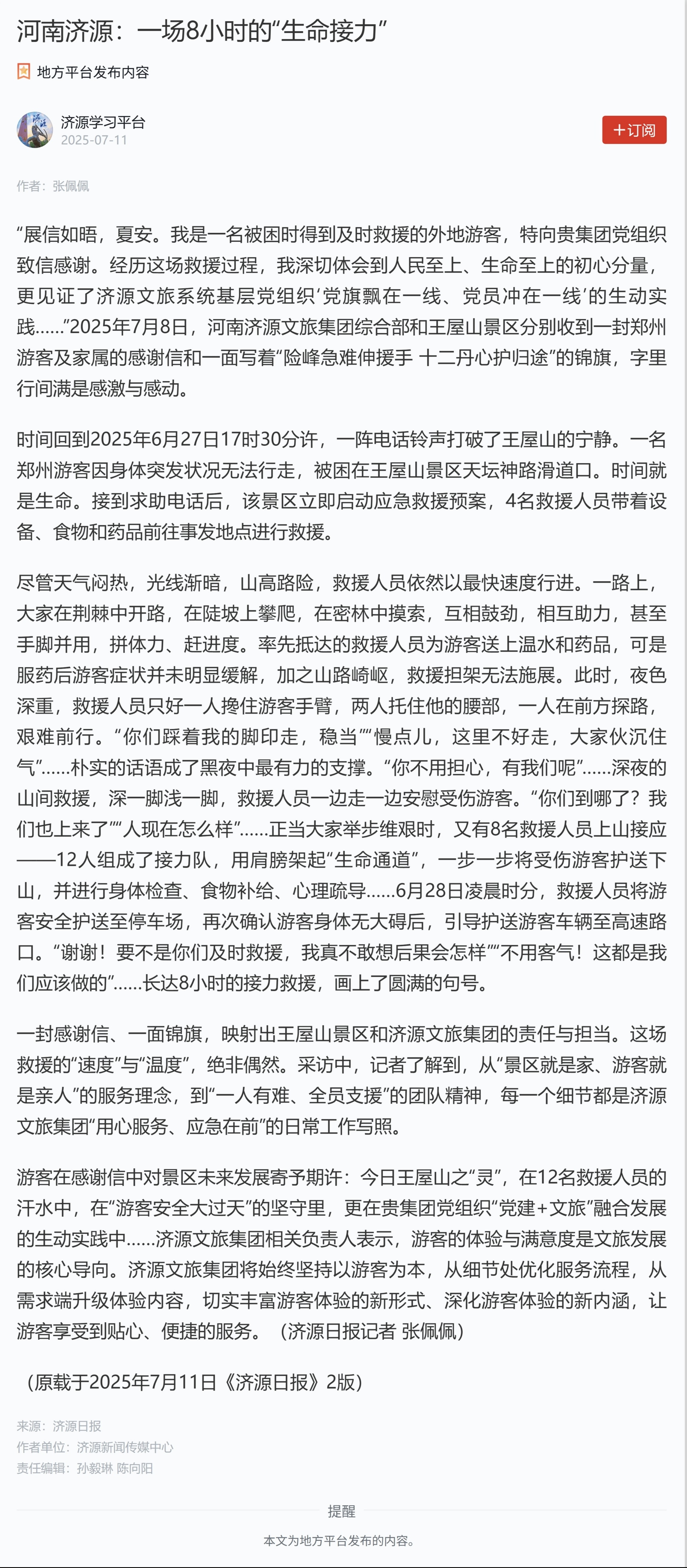 学习强国:河南济源一场8小时的生命接力