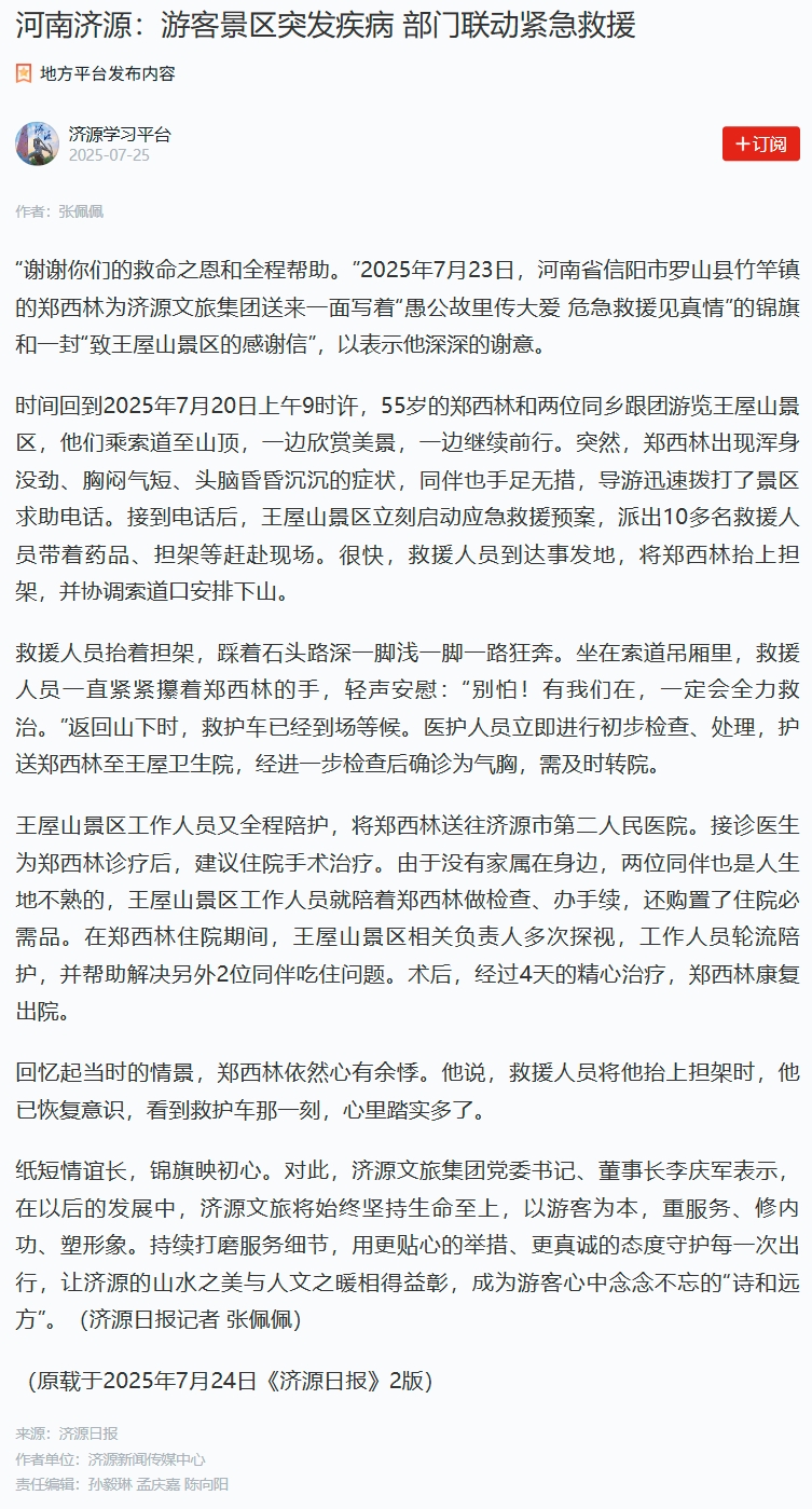 学习强国:游客景区突发疾病 部门联动紧急救援