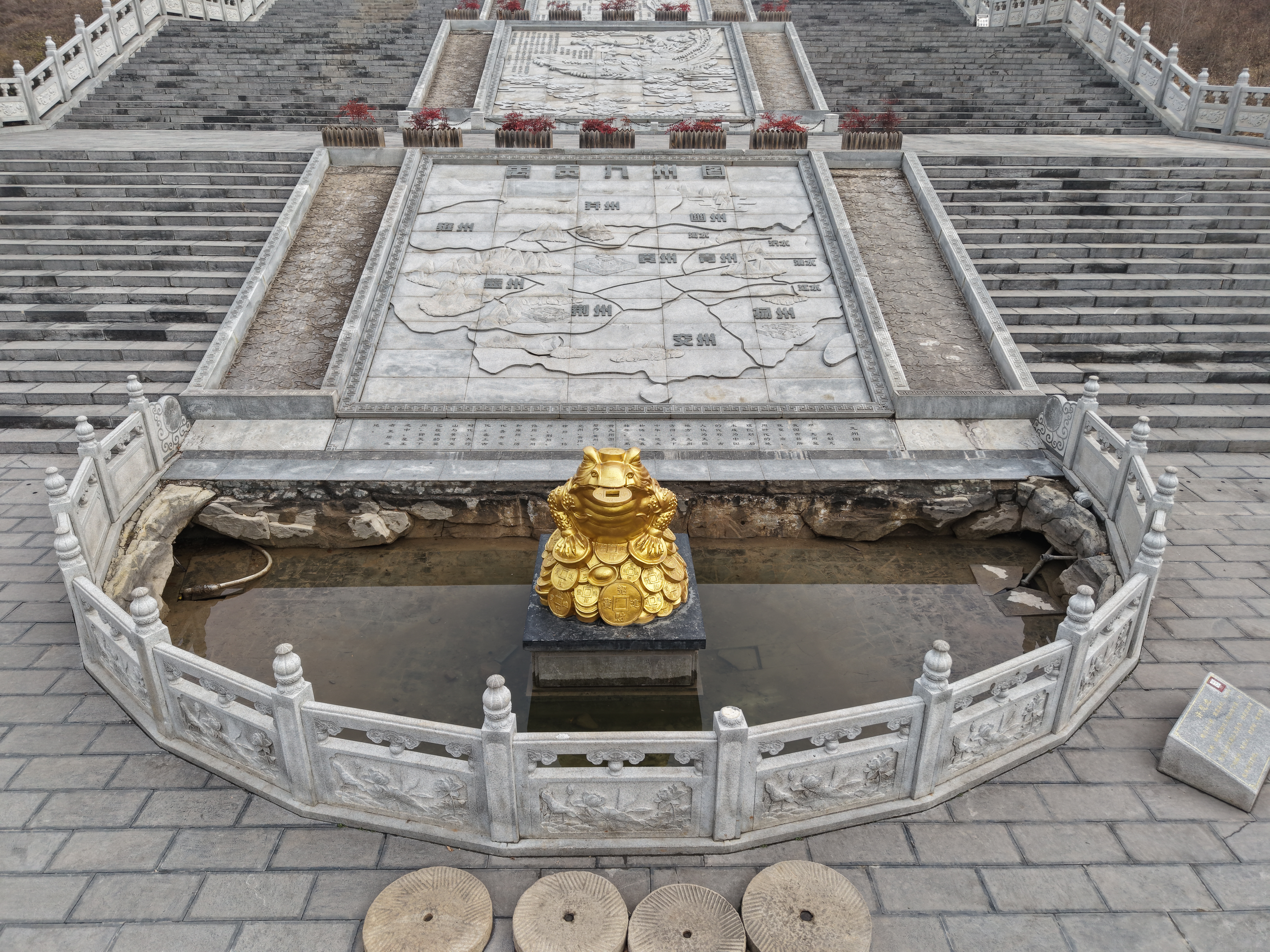 刘海戏金蟾的故事,相传发生在王屋山九里沟。民间有蜕蟾衣、配仙人、钓金钱、蟾宫折桂等美好传说,金蟾为月之精,寓意美好。故称此为“许愿池”。